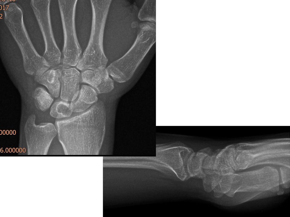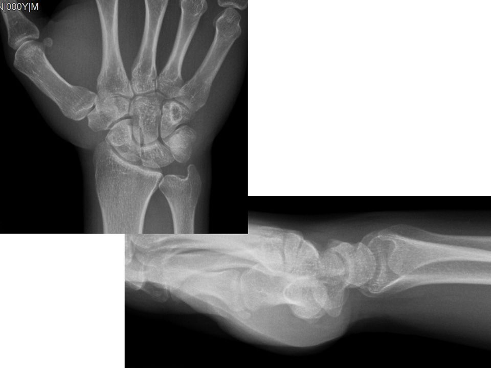 Case 04 - Intraosseous Ganglion Cyst of The Lunate 33 yr, male, warehouse worker, right hand dominancyPain at scapholunate jointRight wrist extension 50°, flexion 60°Watson shift test -